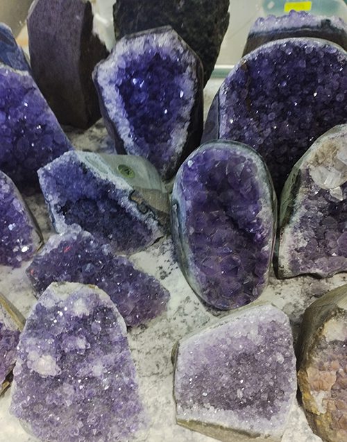 La Amatista es una piedra super poderosa, además de hermosa. Puedes adquirirla como geoda (pieza más completa, cóncova) o drusa, que son trozos de las mismas geodas. Peso por kilo 200 soles.